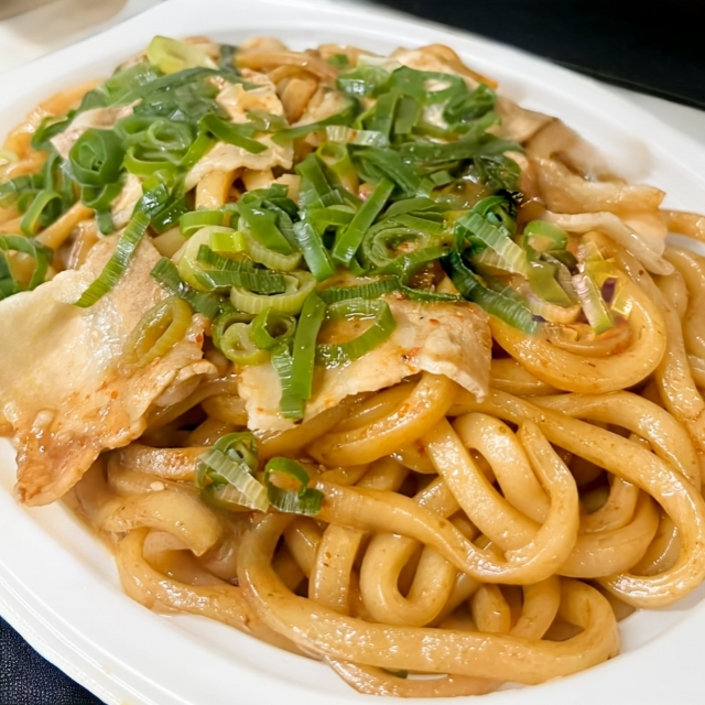 **「厚揚げ×キムチの焼きうどん」**です。