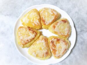 電子レンジで加熱したポテトを使い、チーズを包んでカリッと焼き上げます。このチーズとポテトの組み合わせが絶品です。